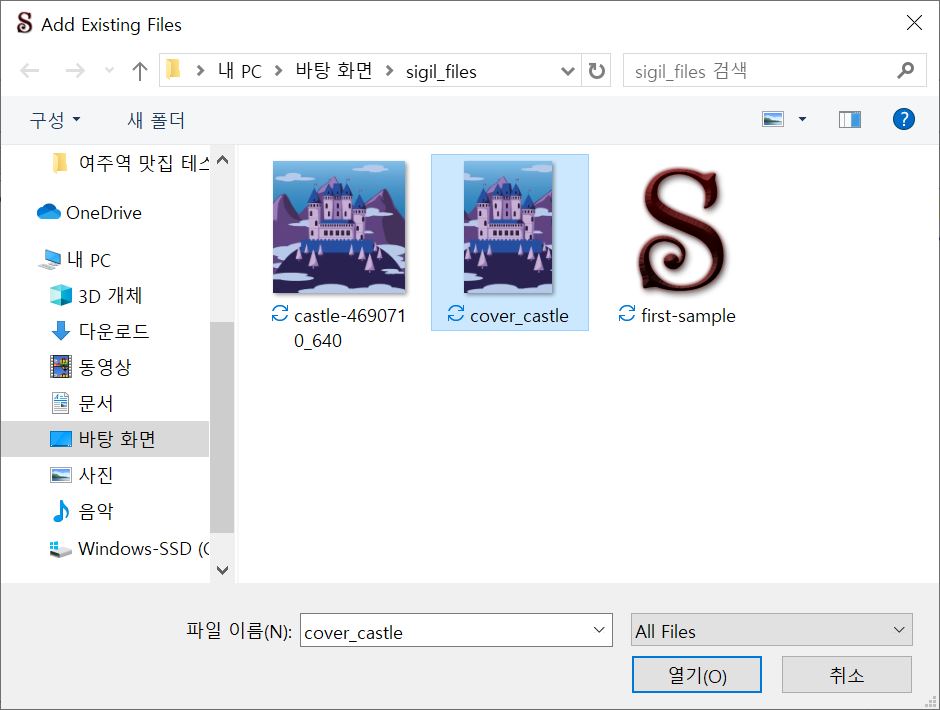 여기까지 해서, 시길(sigil)을 사용해 하나의 이미지로 겉표지와 속표지를 동시에 지정하는 작업을 하였는데요. 이미지를 여러 개 추가해서 겉표지와 속표지를 다르게 할 수도 있으니 참고하세요.