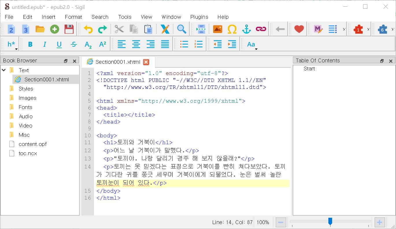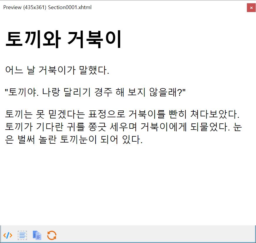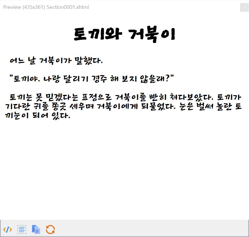 글꼴의 이름은 사실 잘 모르겠습니다만, 윈도우 컴퓨터에서 제공하는 기본 글씨체로 전자책이 만들어져 있는 상태입니다. 이 상태로도 전자책의 내용을 읽는 데에는 아무런 지장이 없습니다. 그러나 어딘가 부족한 느낌이 드는 게 사실이니, 전자책을 좀 더 예쁘게 꾸미는 작업을 해보도록 하겠습니다.