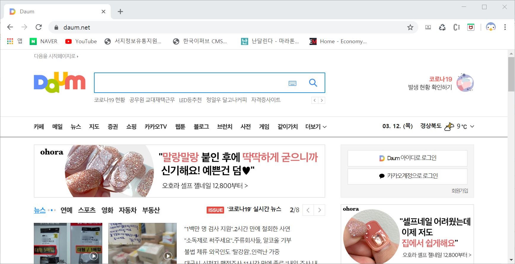 다음 메인페이지입니다. 브라우저는 크롬입니다.