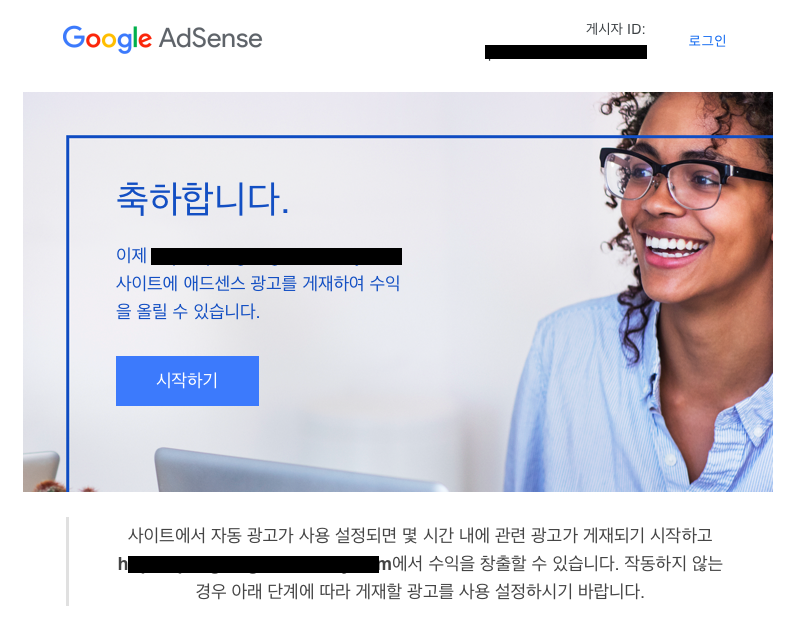축하합니다. 이제 사이트에 애드센스 광고를 게재하여 수익을 올릴 수 있습니다, 라고 하네요.