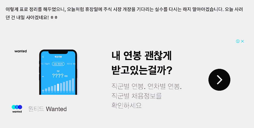 확인하셨나요? 위의 이미지는 제 블로그 글의 일부입니다. 광고가 붙어있는 것이 확인되고 있습니다.