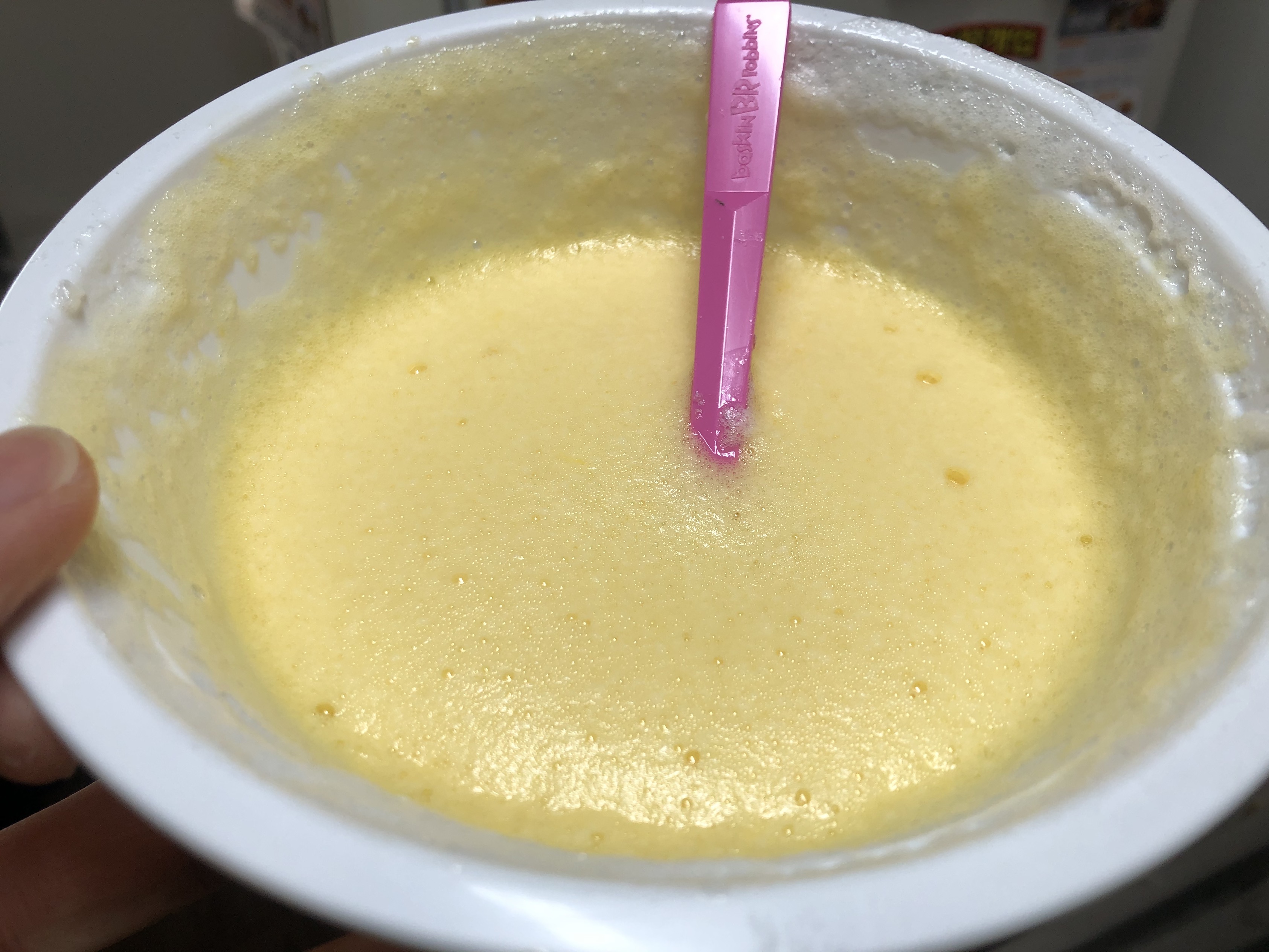 이제는 뭔가 빵 반죽? 또는 카스테라? 같은 느낌이 되었습니다. 이제 팬에다 익혀보도록 하겠습니다.