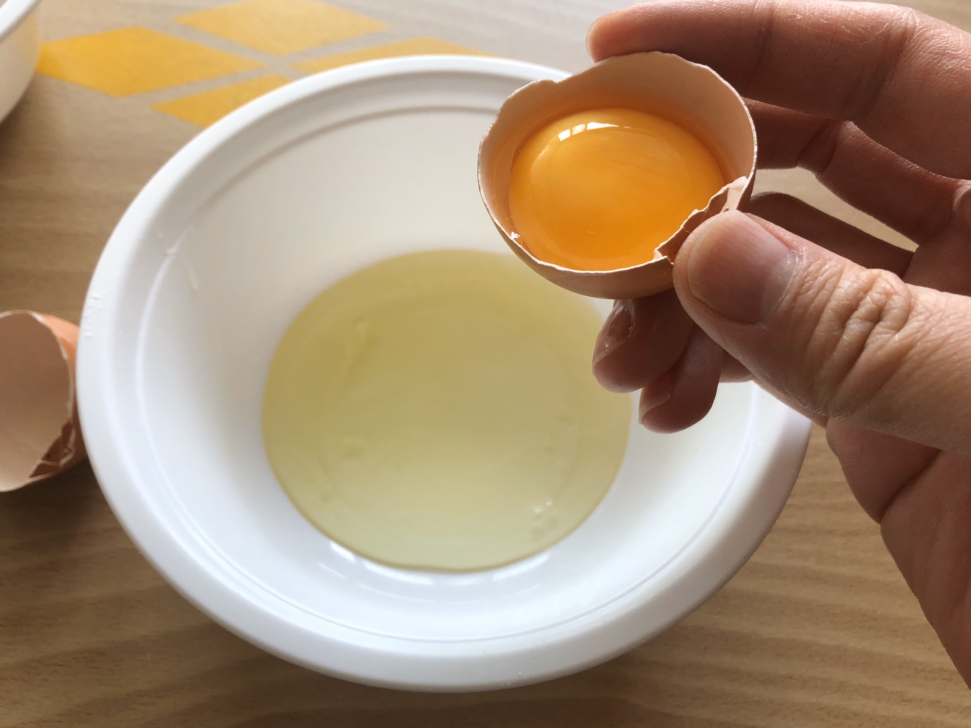 먼저, 계란을 깨서 흰자와 노른자를 분리해줍니다. 그래서 사발이 두 개였던 거예요.