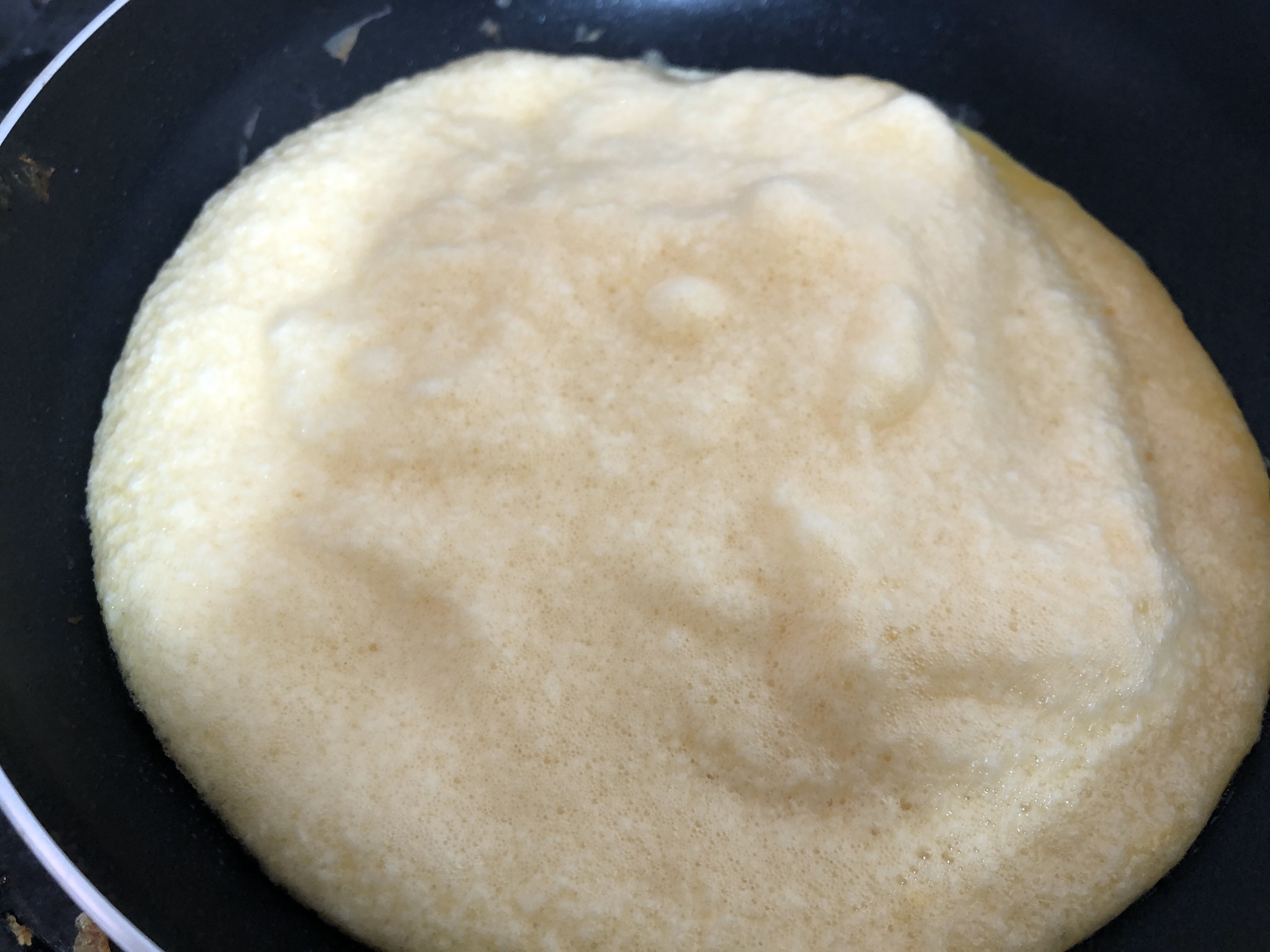 처음 시도해보고 느낀 것은, 팬에다 익힐 때 너무 오래 익히면 안된다는 사실인데요. 왜냐면 너무 오래 익힐 경우 수분이 빠져나가서 오믈렛이 폭신함을 잃어버리는 결과를 초래할 수 있기 때문입니다. 너무 늦게 깨달아 버려서 참 슬프네요.