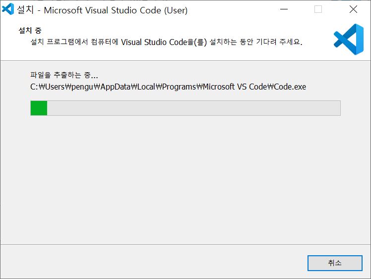 다운로드가 진행됩니다. 다운로드한 파일은 VSCODE의 설치파일입니다. 그러니 다운로드가 끝나면, 설치파일을 바로 실행하시면 됩니다.