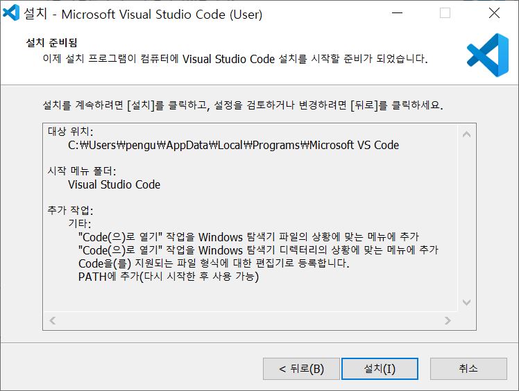 PATH에 추가 - PC내 환경변수에 추가하여, 어느 위치에서든 VSCODE를 사용할 수 있도록 한다는 의미입니다.