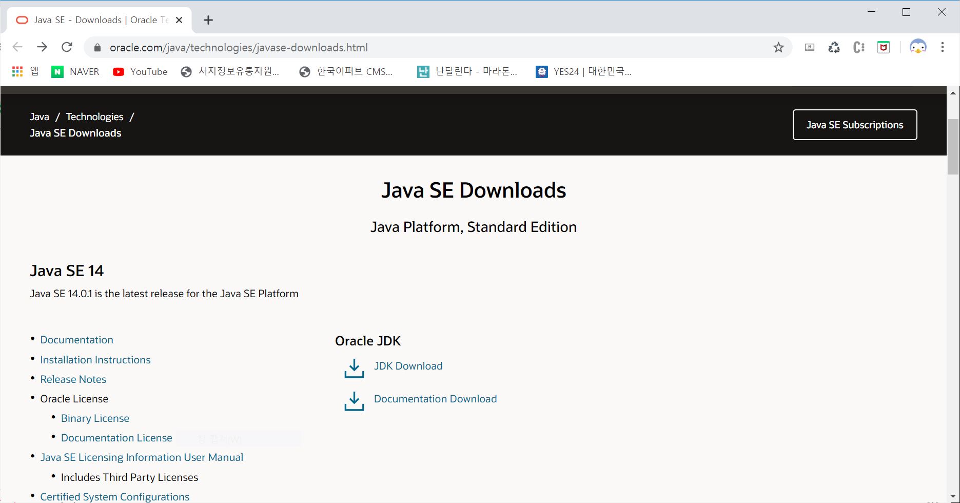 JDK의 설치를 위해서는 제일 먼저 아래의 링크로 이동을 해주셔야 합니다.