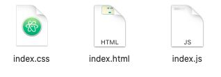 예제 코드를 보관하기 위해 폴더 하나를 만들고, 거기에 index.html, index.css, 그리고 index.js 파일까지 총 세 개의 파일을 생성하였습니다.