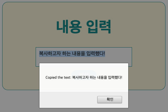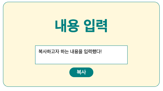 오늘은 자바스크립트 코드를 작성해 텍스트를 복사하는 기능을 구현한 예제를 준비하였습니다.