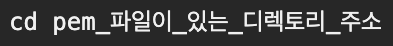 일단 터미널을 열고, pem 파일이 있는 디렉토리로 이동하는 명령어를 입력합니다.
