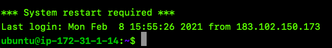 입력을 마치면, 내 컴퓨터에서 내 EC2 인스턴스 컴퓨터에 접속이 되고, 제어가 가능해집니다. 아래 이미지는 저의 맥 터미널에서 우분투 서버에 접속했을 때의 터미널 화면입니다.