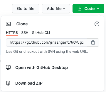 깃헙 저장소 페이지를 보면 Code라고 적힌 초록색 버튼이 보이는데, 이를 클릭하면 박스가 하나 열립니다. 이 박스의 맨 아래에는 Download ZIP 이라는 메뉴가 있습니다. 이를 클릭하면 WOW.js의 라이브러리 파일들이 담긴 압축파일이 다운로드됩니다.