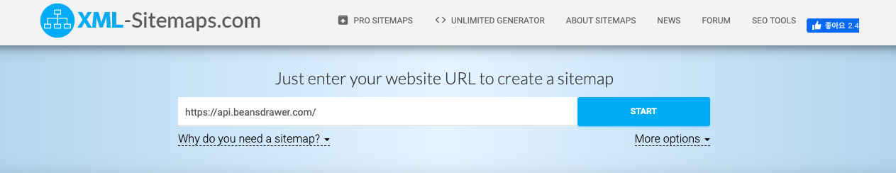 사이트맵 생성 사이트에서 자신의 페이지 URL을 입력하면 사이트맵을 생성해주고, 이를 다운로드할 수 있게 도와줍니다.
