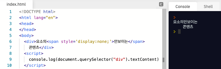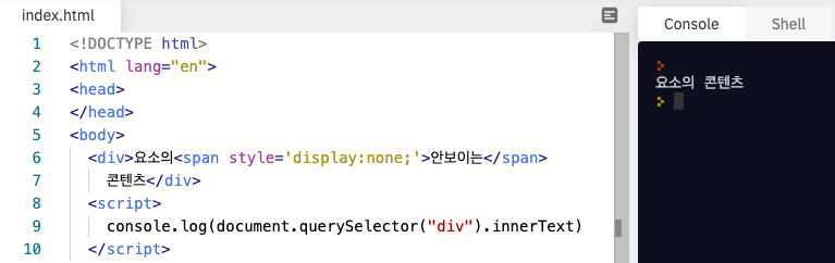 2. innerText 는 웹페이지 사용자가 볼 수 있는 텍스트 노드만을 반환하지만, textContent는 모든 텍스트 노드를 반환합니다.