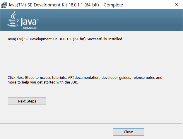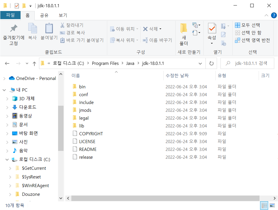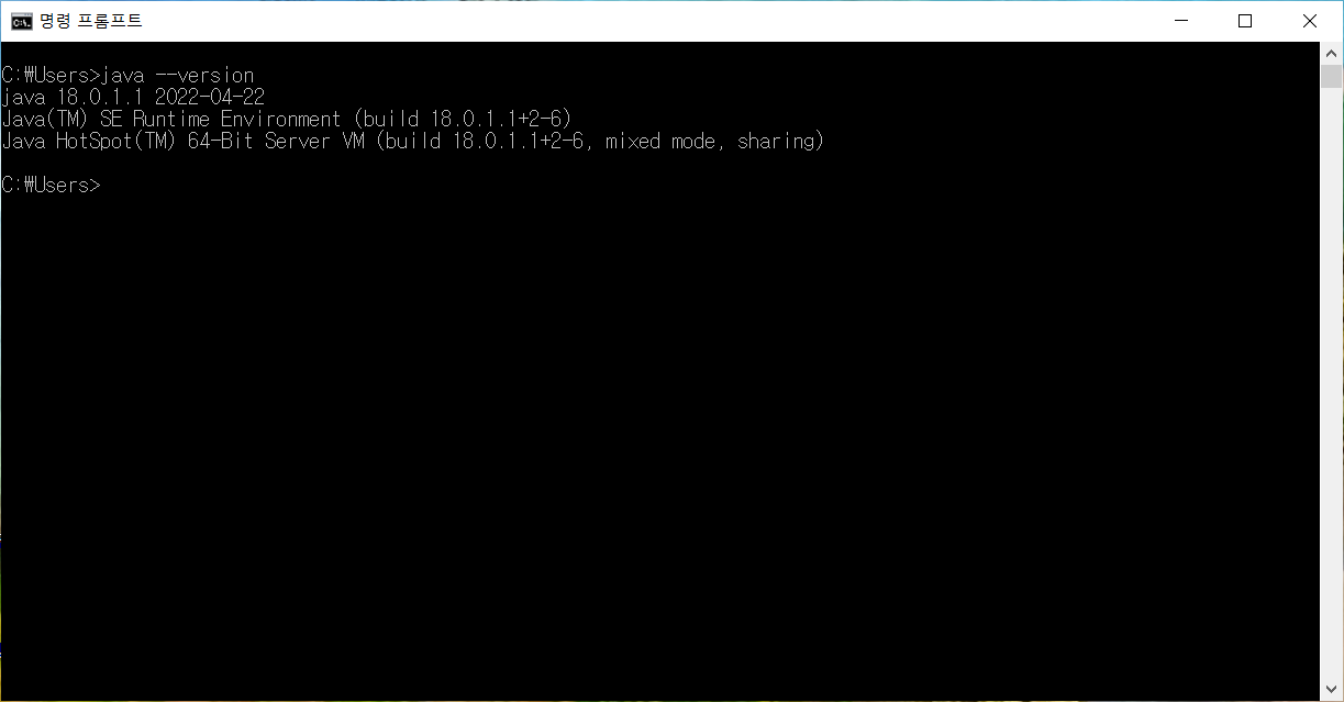 명령어 입력 결과 jdk의 버전이 출력되면 설치 및 설정이 잘 마무리된 것입니다.