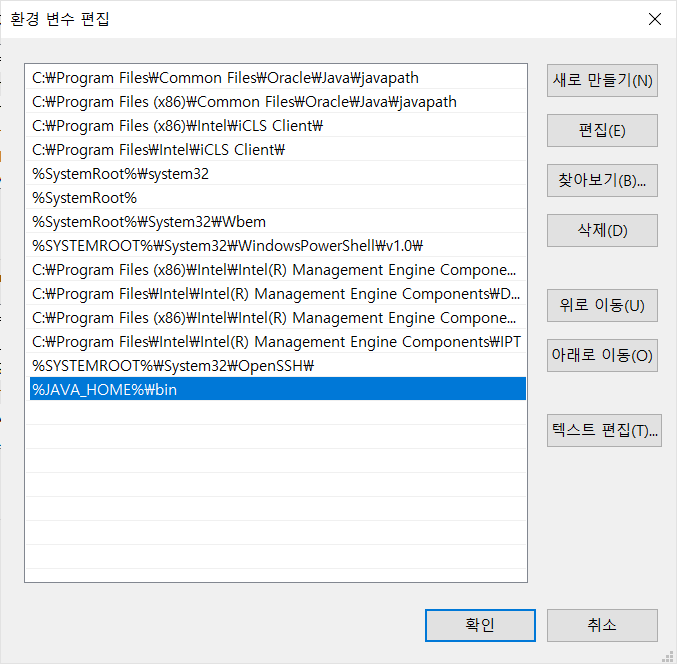 변수 값 : C:\Program File\Java\jdk-18.0.1.1 (jdk가 설치된 폴더 주소로, 사람에 따라 다를 수 있습니다)